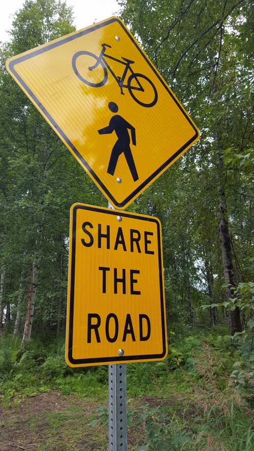 One of two “Share the road” signs installed on Talkeetna’s Main Street. Photo by Phillip Manning – KTNA.