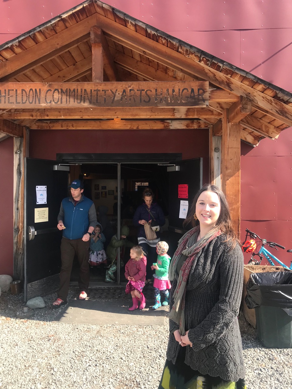 Earth Day organizer Kelly Thomas outside the Sheldon Community Arts Hangar on April 22nd, 2018. Photo by Katie Writer – KTNA