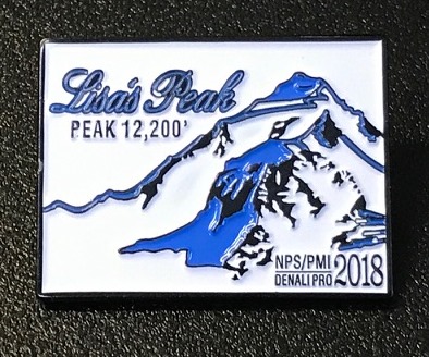 Also this week, longtime base camp manager Lisa Roderick was honored. She has been working base camp for Talkeetna Air Taxi and K2 Aviation for nearly twenty years. Each year, mountaineering rangers present special pins to climbers who exhibit “exemplary expedition behavior,” with one or two of those each year receiving the Mislow-Swanson Denali Pro Award. Each year, the pins feature a peak in the Alaska Range. This year’s featured mountain does not have an official name, but most people who head into base camp know it as “Lisa’s Peak.” In addition to having her name on this year’s pin, Roderick was given the Mislow-Swanson award in 2015.