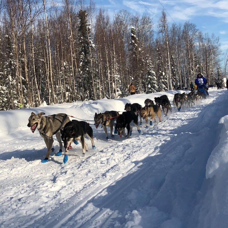 Butchy talks with Talkeetna kennel owner, musher and Iditarod finisher Anja Radano at Swamp Dawg Kennel.