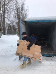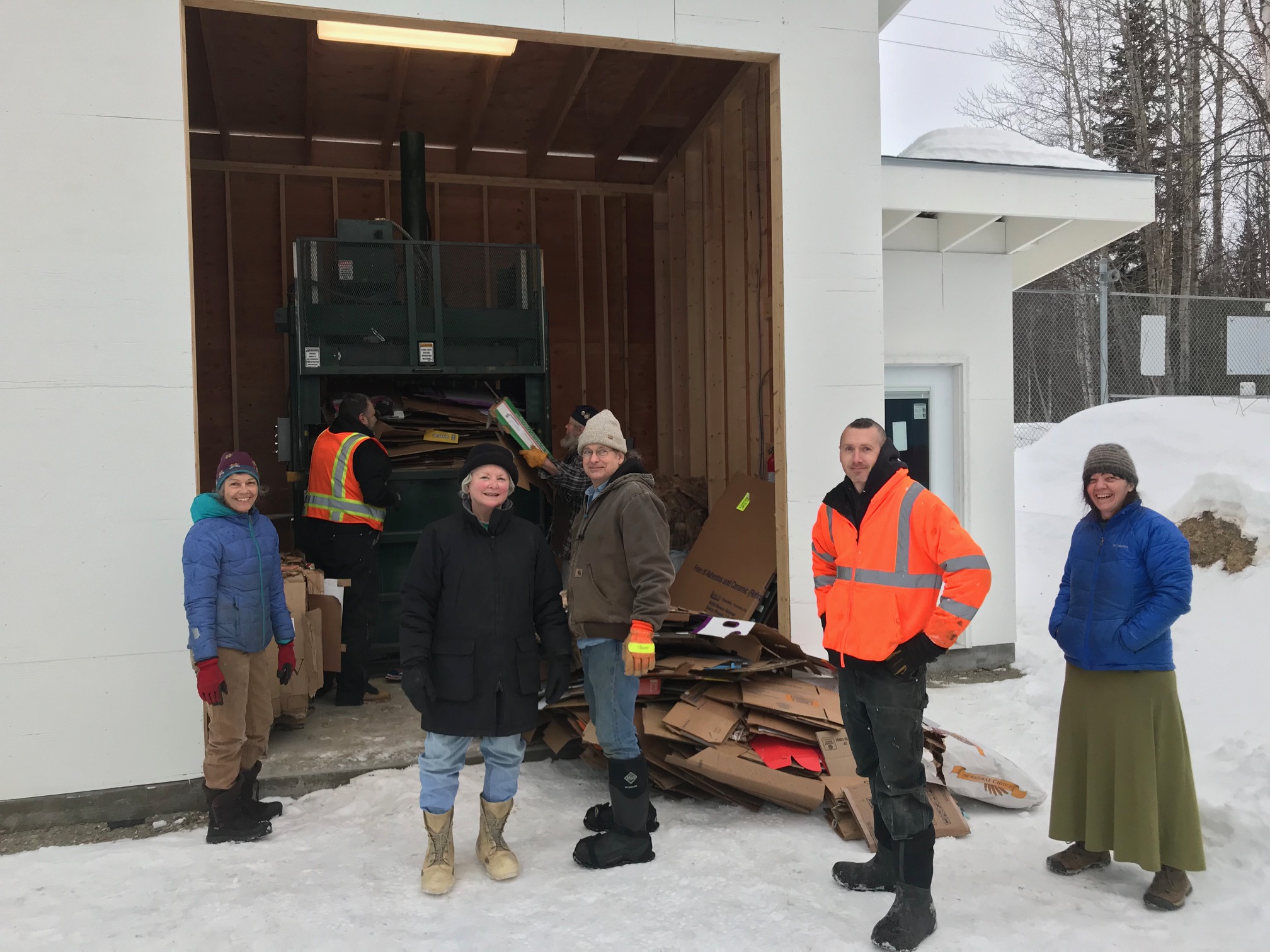 A long-anticipated goal has been realized at the Talkeetna transfer station. After years of discussion and paperwork, the cardboard baler is online. Talkeetna Recycling Works of the Talkeetna Community Council, Inc. and the Mat-Su Borough teamed together on this project with the main objective to re-purpose cardboard while keeping it out of the landfill. Though reaching a final agreement between the borough and the TRW was complex, both Mat-Su Solid Division Waste Manager, Butch Shapiro and chair Brenda Walsh of Talkeetna Recycling Works, applaud the widespread community effort to create the space for the baler.