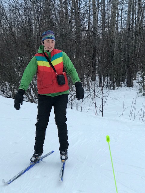 The Junior Nordic Ski Program has 33 skiers this year as well as a new assistant coach, Tucker Chenoweth. At the beginning of Wednesday’s practice, the coaches discussed with the young skiers what to do when they see moose on the trail. At this time of year, there are more moose on trails with a deeper snowpack. Head coach, Aubrey Smith offered common sense tips, including turning around and going the other way, especially if they see a cow and calf on or nearby the trail. Tucker suggested to get behind a tree for protection. Fortunately, at this Wednesday’s practice, there were only visible moose tracks and no moose encounters. As a Talkeetna Elementary School teacher, Coach Aubrey knows how to combine fun memory games and ski conditioning into practice.