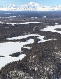 An aerial shot of Talkeetna Lakes Park in March, 2019. Photo by Katie Writer – KTNA