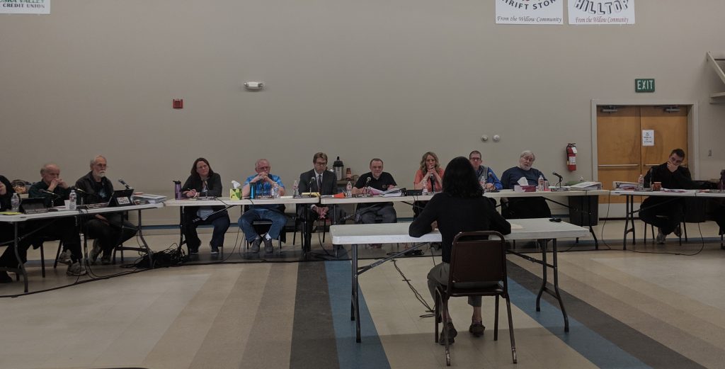 On Thursday, the Mat-Su Borough Assembly held its annual public hearing on the borough budget at the Willow Community Center. More than sixty Northern Valley residents attended the meeting, and many testified on subjects affecting their respective communities.