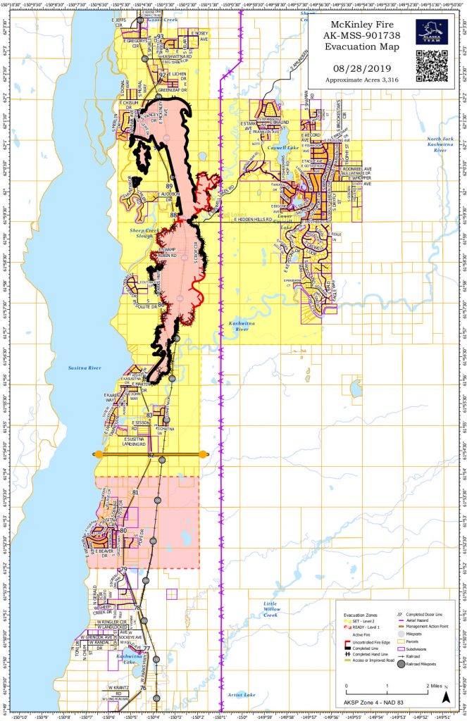 As progress has continued on the McKinley Fire in the Caswell area between Willow and Talkeetna, evacuated residents have begun returning home, and the Parks Highway is once again open to two-way traffic. The speed limit through the fire area has been reduced to forty-five miles per hour, and that stretch of highway has also been classified as a work zone, meaning traffic fines are doubled.