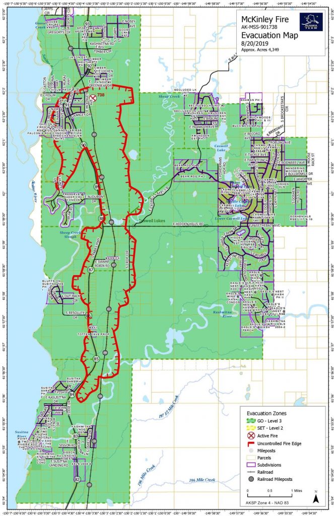 This reprieve from the weather has allowed the State Fire Marhsal’s Office and Mat-Su Borough to begin assessing damage from the McKinley Fire. That assessment is expected to take multiple days. Until then, the evacuation order remains in effect. Multiple crews are arriving and on the way to assist with more aggressive firefighting tactics in the coming days. The McKinley Fire is currently 4,349 acres.