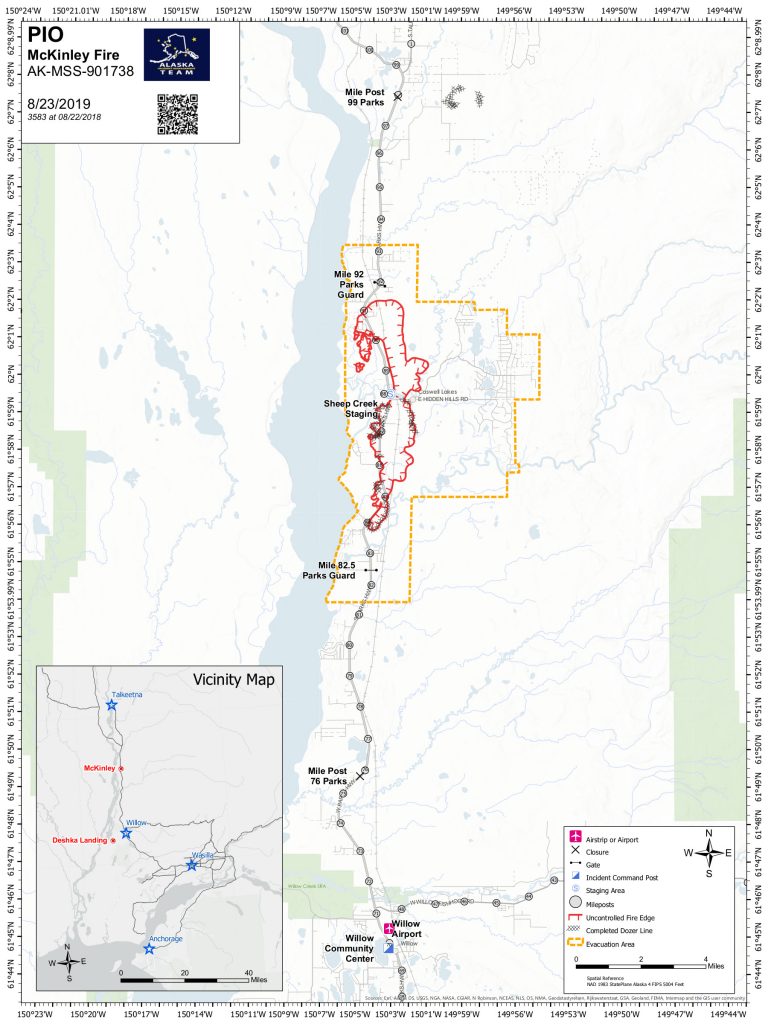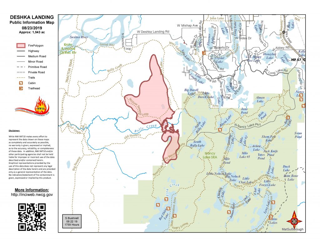 Official map of the Deshka Landing Fire released on the morning of Friday, 8/23/19
