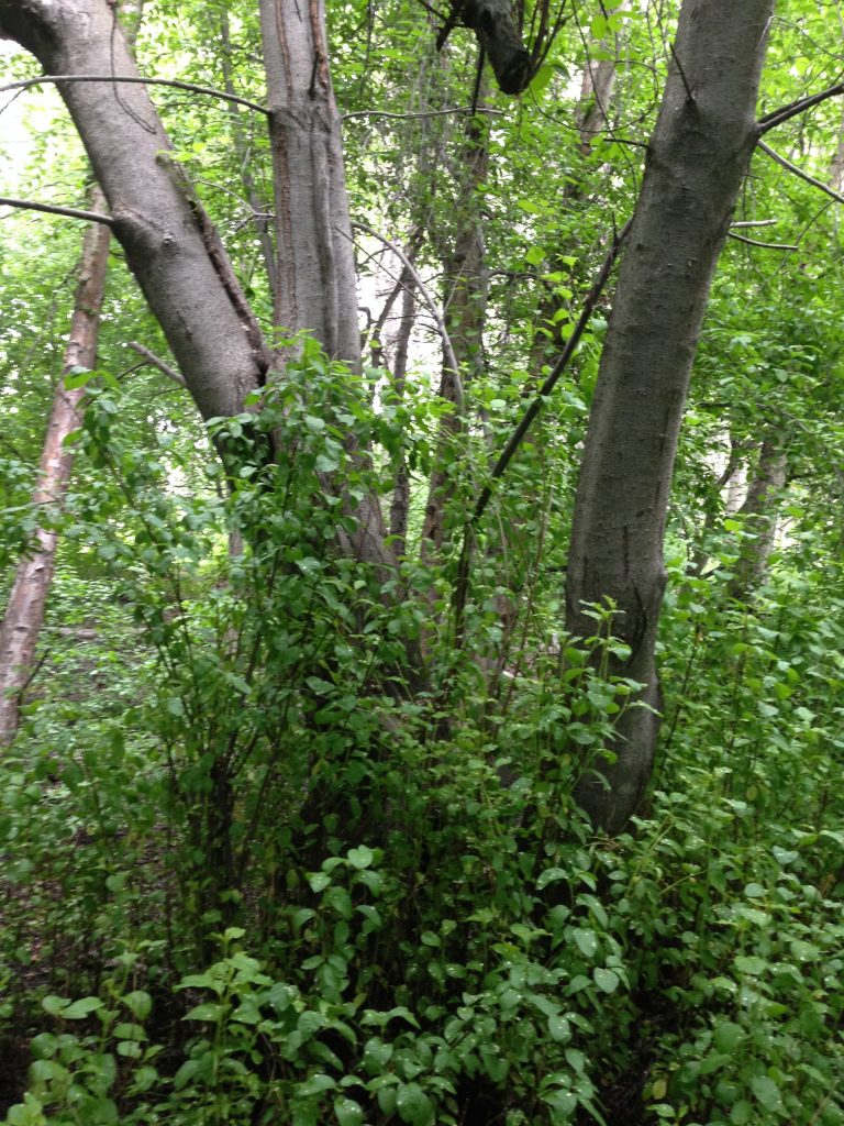 Mayday Trees have grown in thickets and are establishing monocultures in some Anchorage parklands. Photo courtesy Tim Stallard