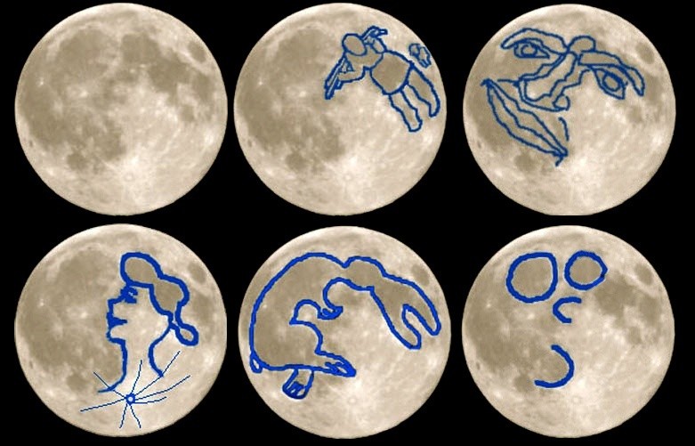 What do you see when you look at the patterns on the surface of the moon?