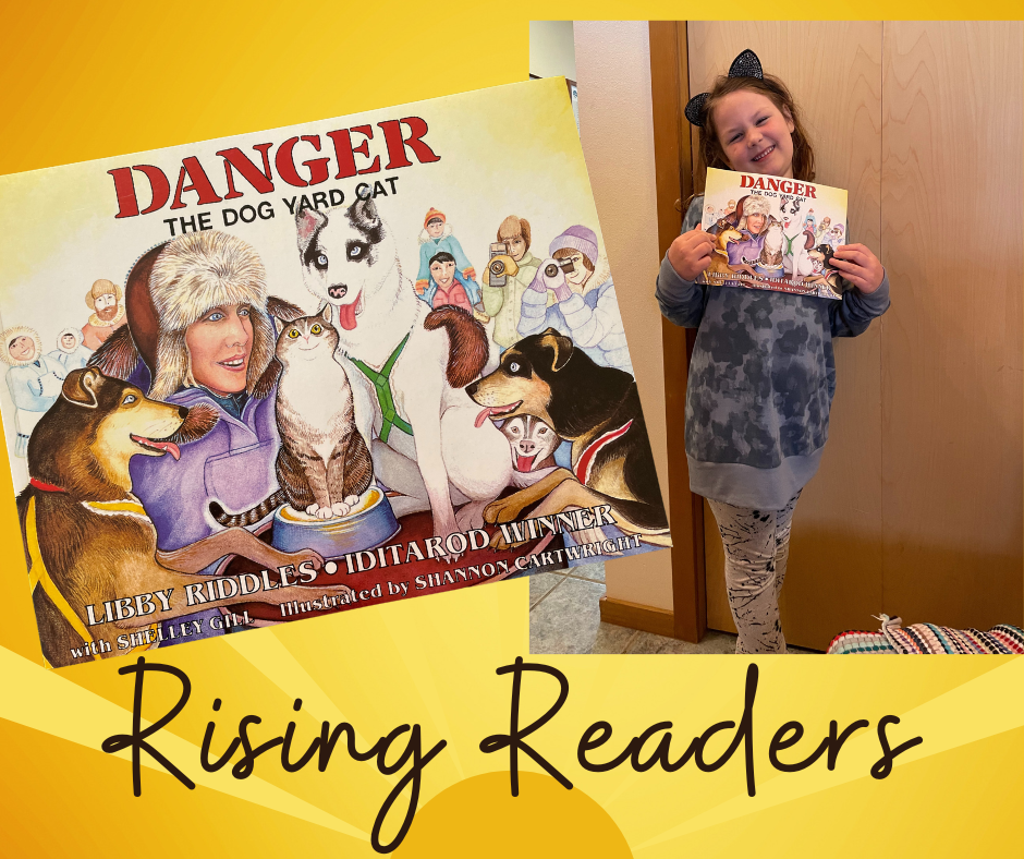 In Rising Readers Episode 5, Juniper reads Danger the Dog Yard Cat shares her favorite parts of the book on KTNA. Danger the Dog Yard Cat is written by Libby Riddles and Shelley Gill and illustrated by Shannon Cartwright.
