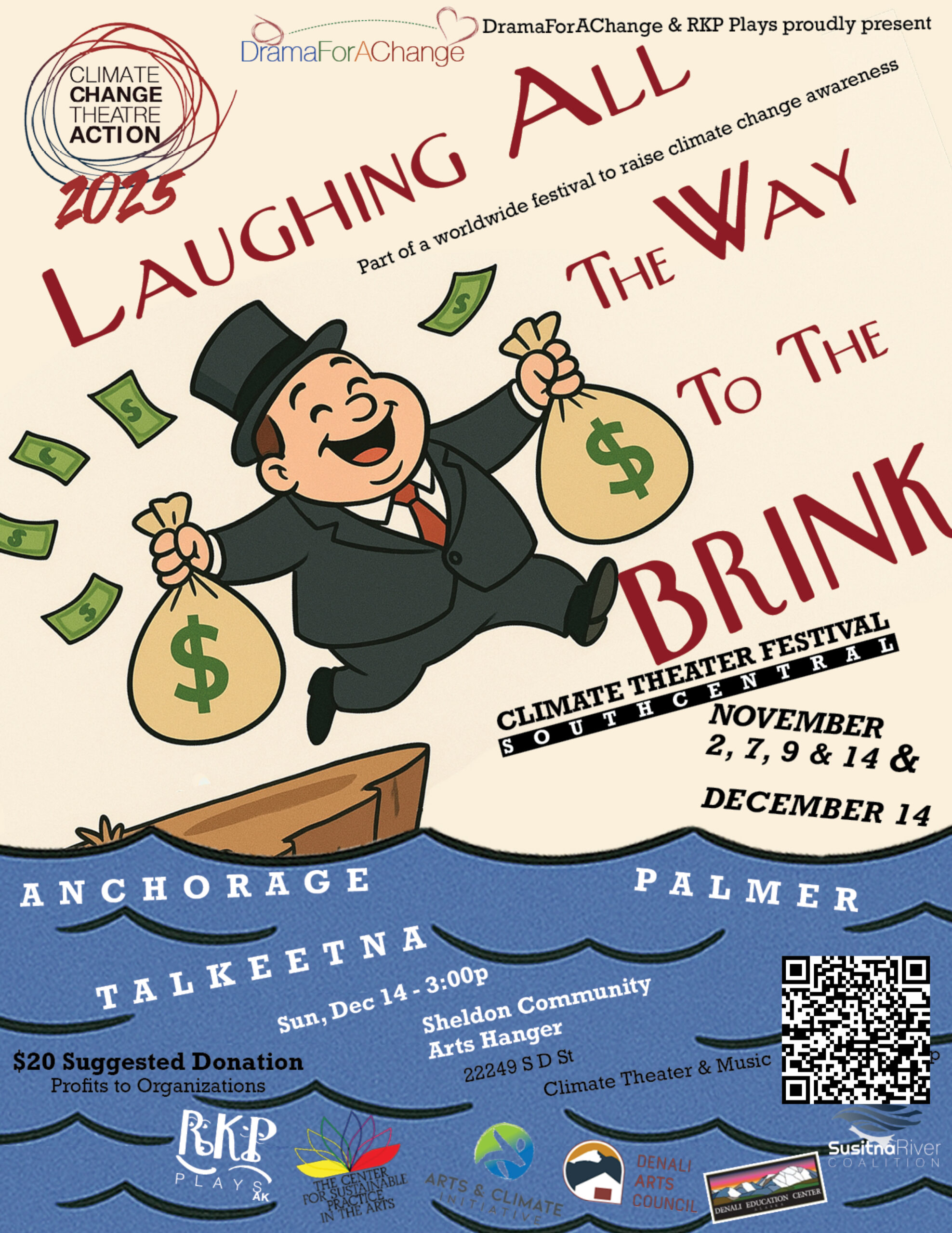 Denali Arts Council hosts a Matinee of the performance, Laughing All the Way to the Brink, at the Sheldon Community Arts Hangar on Sunday, December 14th. This theatrical event is part of the Climate Theater Festival and will feature seven short plays by playwrights from around the world. While climate change is very serious, most of these plays are very not. Doors open at 2:30, and the performance is at 3pm. Donations are welcome, proceeds raised will go to the Susitna River Coalition. Learn more at denaliartscouncil.org. The Mat-Su Jewish Center Chabad hosts a community Chanukah celebration at the Upper Susitna Community and Senior Center on Sunday, December 14th at 3:30pm. There will be a Menorah lighting, holiday treats, festive music, and activities for all ages. Everyone is welcome. For more information, visit MatsuJewishCenter.org. |